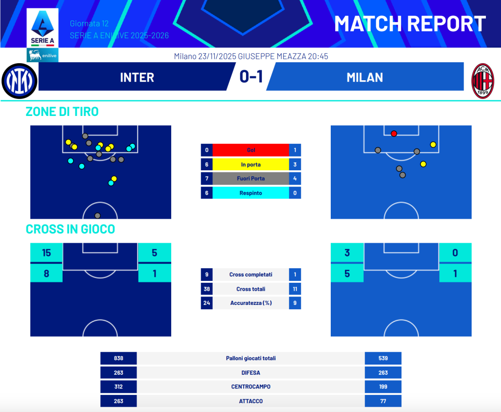 Inter’s 0-1 loss in the Derby della Madonnina was a profound disappointment. It was an “embarrassing predicament” because they controlled every statistical measure. The core problem was a structural defect. The 3-5-2 system is highly dependent on both wing-backs functioning optimally.